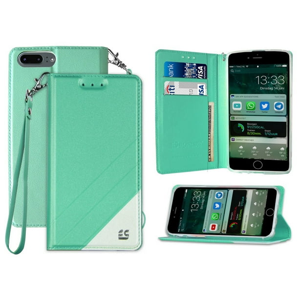Mint Wrist Strap Lanyard Wallet Credit Card Case Viewing Stand For Apple Iphone 7 8 Plus Walmart Com
